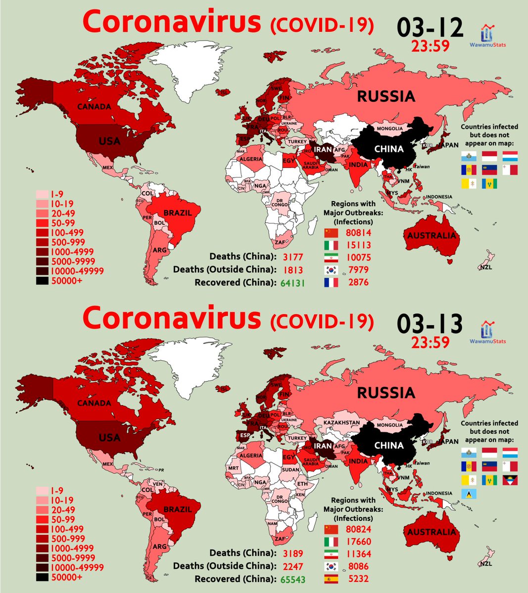 Wawamustats Pa Twitter Covid19 Yesterday Vs Today All Countries In South America Are Infected Now And There Are Huge Increases Of Infected Countries In Africa Https T Co Jo60e8sxzh